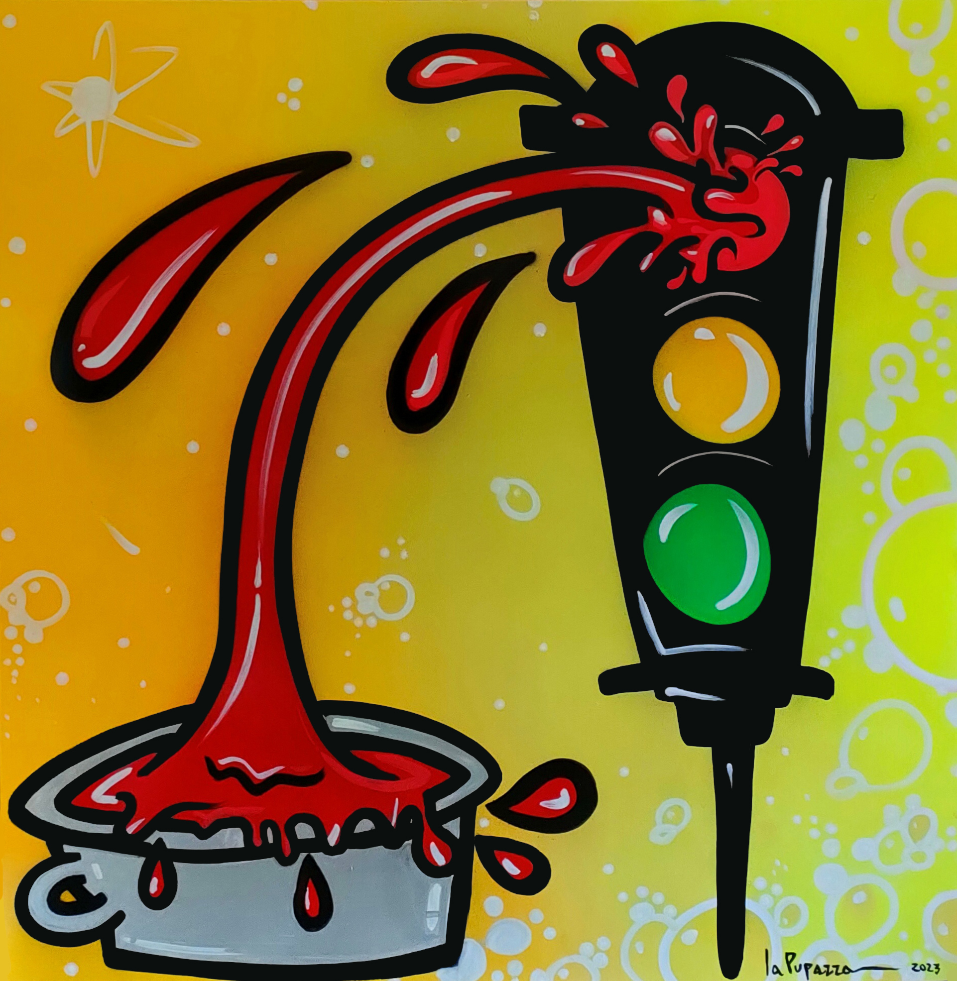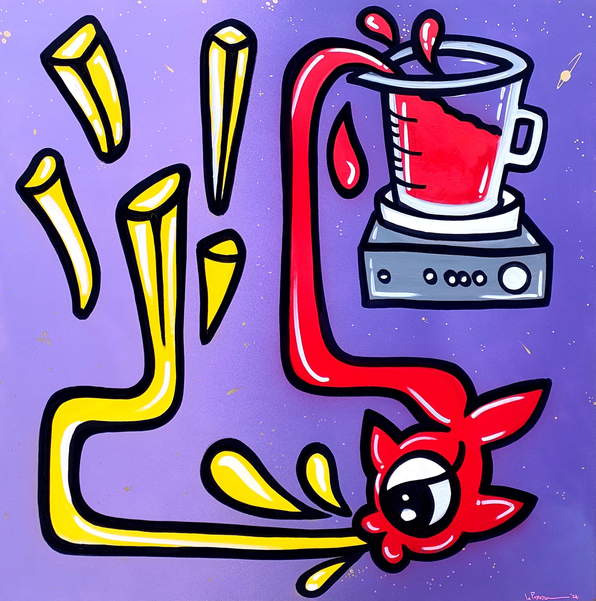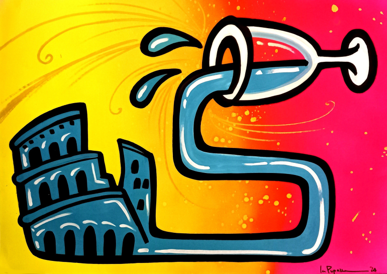 Perché “Molto Sugo”? Perché è un’arte che trabocca di energia, proprio come il pomodoro in pentola. “C’è molto da dire, molto da fare, molto da ridere”, racconta La Pupazza. Il titolo è un omaggio al suo stile: generoso, universale, mai banale. Come disse Edward Hering: “L’arte non riproduce ciò che è visibile, ma rende visibile ciò che non sempre lo è.” Una verità che La Pupazza sembra incarnare in ogni sua opera, trasformando il quotidiano in straordinario.