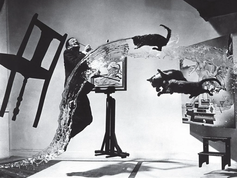 Con Philippe Halsman, invece, la fotografia diventa performance, come nel celebre scatto “Dalí Atomicus” con Salvador Dalí, dove il reale si frantuma e ricompone davanti all’obiettivo.