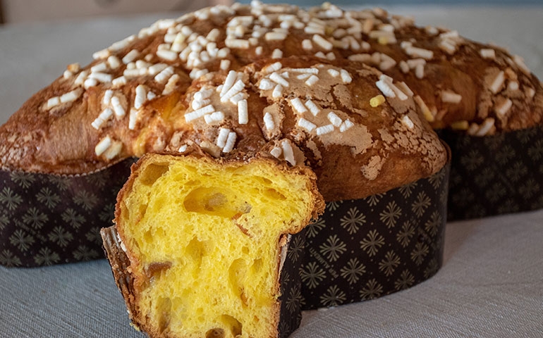 Colori pastello per la Pasqua di quest’anno: il Maestro Pasticcere Denis Dianin ha scelto il rosa, l’azzurro e l’arancione per la copertura della sua colomba tradizionale e per il coniglietto pasquale che decora le confezioni della colomba in vasocottura. Quest’ultima quasi, a vederla, un oggetto di design da esporre: una confezione patinata dai colori pastello e un simpatico coniglietto stilizzato al di sopra. Disponibile in svariati gusti: classica, arancia e pesca, albicocca, cioccolato bianco e caffè, albicocca, mandorla e zenzero; grazie alla tecnica della vasocottura si conserva fino a tre anni. Un prodotto che pensa anche all’ambiente; i vasi infatti sono riciclabili al 100% così da ridurre l’impatto ambientale e possono essere riutilizzati come contenitori di spezie e aromi. La colomba tradizionale viene proposta anch’essa in 6 gusti tra cui scegliere, ed è realizzata con un triplo impasto e 36 ore di lievitazione.