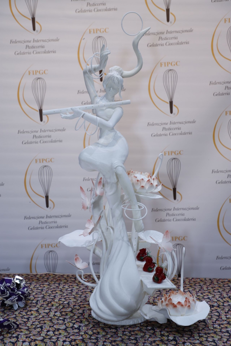 Yosuke Otsuka ha vinto invece la prova di Scultura in Pastigliaggio, con la realizzazione di un'armoniosa figura danzante total white, accompagnata da una torta monoporzione a base di mousse di yuzu (frutto giapponese simile al mandarino), glassa e gelè alle fragole.