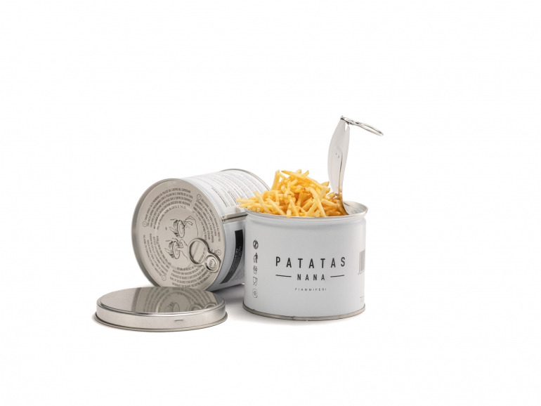 Oltre alla forma che ricorda la nostra infanzia e le merende che facevamo da bambini, i Fiammiferi di Patatas Nana sono sinonimo anche di ecosostenibilità: il nuovo packaging, sempre essenziale ed elegante, è in alluminio riciclabile 100% plastic free.