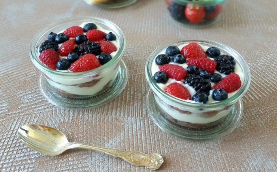 Questo dolce al cucchiaio è davvero facile da preparare e sarà il dessert perfetto per le vostre cene d’estate. La ricetta di Bettina non prevede l’uso di uova, quindi sarà adatta a tutti perché più leggera e digeribile e perfetta per chi non ama usare le uova crude, ma senza rinunciare a gusto e cremosità. La cremosità e il sapore ricco del mascarpone si abbinano perfettamente alla dolcezza della frutta, all’acidità del limone e alla croccantezza dei biscotti.