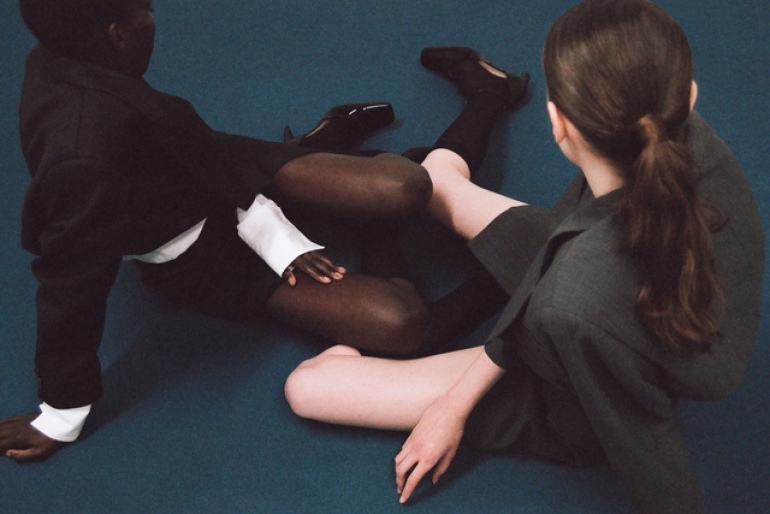 La collezione capsule include blazer corti, giacche bolero, vestiti e gonne mini. Una divisa business contemporanea che è definita dai suoi contrasti: volumi maxi e lunghezze mini, spalle ampie e mini gonne, tagli maschili e dettagli femminili. Una palette fredda che attraversa la gamma dei grigi ed evidenzia il nero.