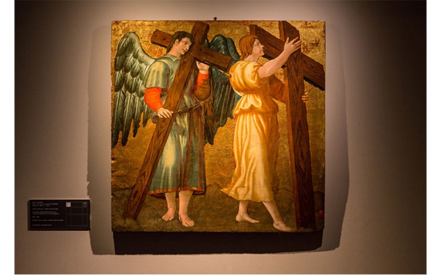 La mostra dedicata a Nicola Filotesio vede esposte quattro opere oggi custodite nella Pinacoteca Civica di Ascoli Piceno, che conserva alcune delle tavole più rappresentative dipinte dall’artista: due Angeli e la coppia di tavole della Vergine addolorata e del San Giovanni apostolo, figure a grandezza naturale di toccante intensità emotiva. La Vergine Addolorata e il San Giovanni apostolo provengono dalla cappella del Crocifisso della chiesa dell’Annunziata nel monastero degli Osservanti (AV) e il loro stile sembra quasi anticipare l’arte della Controriforma: la commovente intensità dei due dolenti, raffigurati a grandezza naturale e a mani giunte ai piedi della croce, favorisce l’immedesimazione dei fedeli, offrendosi quale modello di preghiera e di struggente partecipazione.