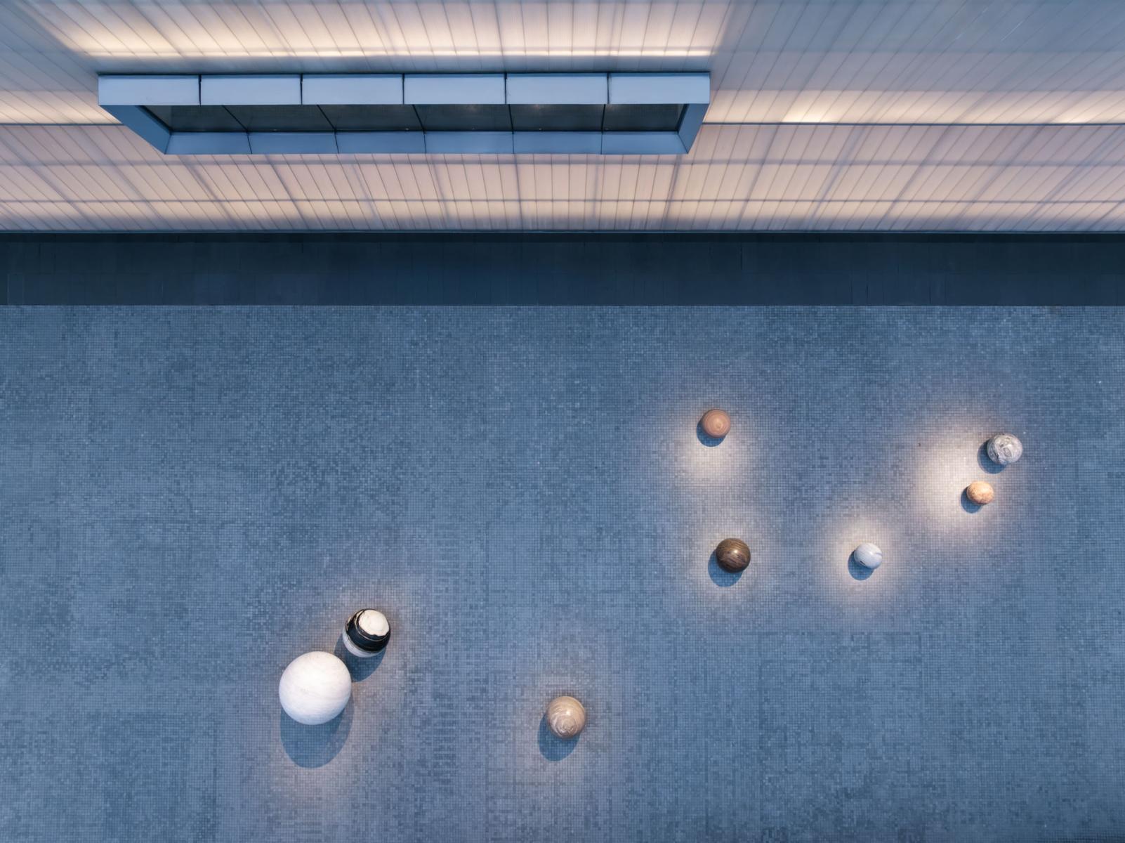 La vocazione del museo si estende anche oltre gli spazi interni. Nel cortile centrale si impone Pars pro Toto (2020) di Alicja Kwade; sulla terrazza superiore Breast Stupa Topiary (2013) di Pinaree Sanpitak propone una riflessione sul corpo e sulla spiritualità. Tra le commissioni site-specific, la prima grande installazione di James Turrell in Thailandia, Straight Up, costruisce un doppio rapporto con il cielo: al piano terra, una camera obscura lo proietta sul pavimento attraverso una lente; al piano superiore, uno Skyspace lo incornicia e lo fa discendere nello spazio architettonico.