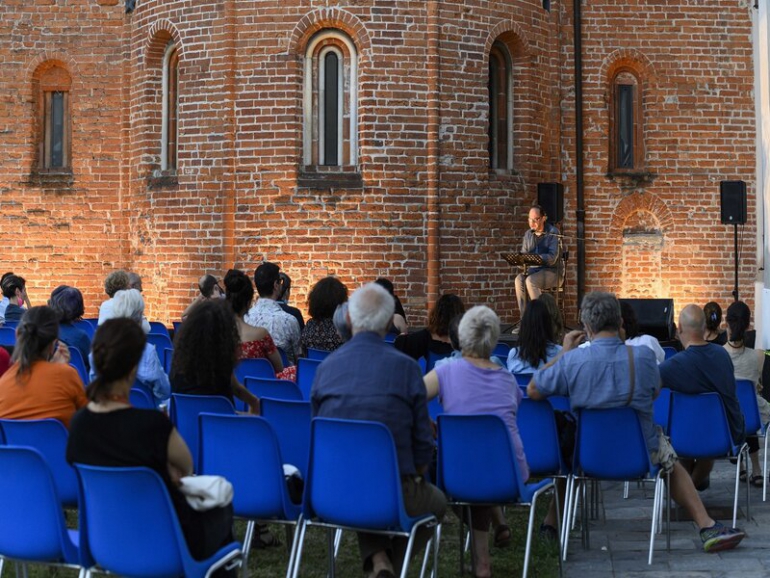 “La prima stella della sera” - questo il titolo evocativo della rassegna (partita il 7 luglio) - ha visto - e vedrà protagonisti - 22 artisti, 22 storie, 22 incontri a sorpresa + uno spettacolo per bambini. Come nel teatro greco si comincia alle h 19.30 in una location cara ad Atir, dove nel tempo la compagnia è riuscita a intercettare gli spettatori-abitanti nei dintorni, ma non solo. Ci riferiamo al Parco Chiesa Rossa presso il Cortile della Chiesa S. Maria alla Fonte vicino a quella sala che per tani anni hanno animato.