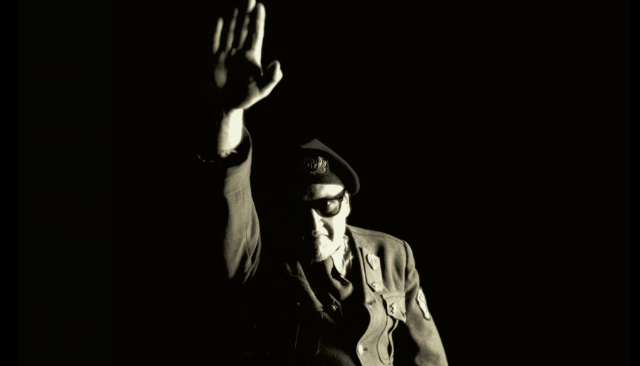 Un rigurgito di quella violenza che appartiene anche ai giorni nostri e non è relegata al passato come forse troppo facilmente ci piace pensare. Lui, il mai morto, in divisa fascista parla al pubblico manifestando tutto il suo dispiacere per i tempi che furono, elenca senza alcuna vergogna o pietas umana l’indicibile: stupri, abusi, morsi di cane, ferri roventi, omicidi, gas, stragi impunite. Incita alla violenza il mai morto; vede nella guerra la conseguente espressione dello stato naturale dell’uomo che tale vuole definirsi.