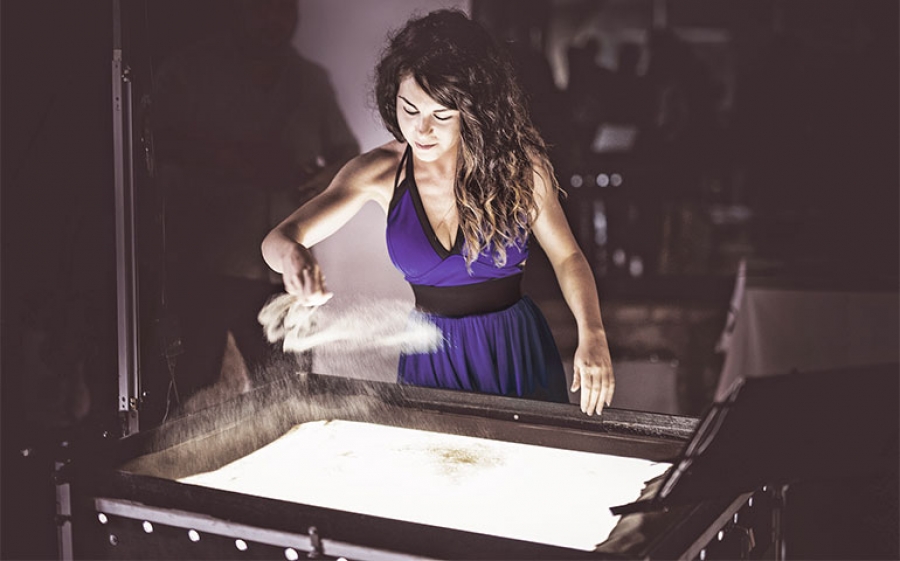 Consiste nel maneggiare dei granelli di sabbia, e grazie ad un particolare gioco di luce daranno vita a figure animate, che saranno proiettate su di uno schermo così da offrire la visione allo spettatore.