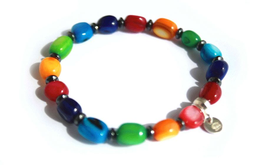 EC: La Rainbow Collection è il frutto di ricerca e contaminazioni di una società che cambia velocemente. Valori come l’uguaglianza, la parità dei diritti, la pace fra i popoli, segnano nuovi scenari colorati di un progresso che Minnie’s Jewels ama ed appoggia incondizionatamente! La Rainbow Collection grida al mondo, con la forza del colore e con un pantone di emozioni, un messaggio di pace. Le materie prime utilizzate sono assolutamente naturali, tutte le mie collezioni sono il frutto di una scrupolosa selezione basata sulla qualità e sulla provenienza di ogni pietra. Nella Rainbow Collection l’ematite si abbina alle sfumature più belle del legno mentre il turchese scivola fra la madreperla in modo nuovo e sofisticato. Il profilo “Rainbow” incarna a pieno l’uomo e la donna dei nostri tempi: eclettici, sofisticati e postmoderni.