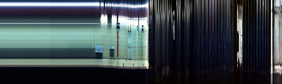 Si tratta di fotografie in corsa, statiche eppure mosse, che comprimono il tempo e dilatano lo spazio, che colgono la realtà secondo una prospettiva inedita, a tratti disturbante, fremente, geniale. Gli skyline cittadini ricordano tracce audio e i grattacieli si mutano in picchi sonori, le rotaie si deformano e si sciolgono come gli orologi di Dalí. Lo spazio e il tempo si curvano e lasciano intravedere lo scheletro delle leggi fisiche che li regolano, tanto che alcuni non faticheranno a riconoscervi il tratto distintivo di The Matrix, quel codice a scorrimento che dà forma alla realtà virtuale.
