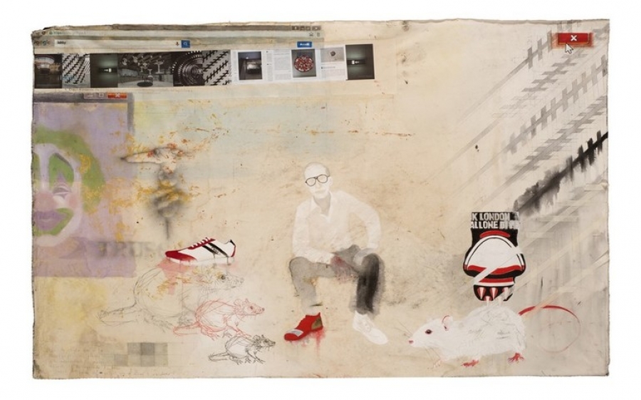 Frammenti e riferimenti tratti da Hieronymus Bosch, Picasso, CarstenHoller, Matthew Barney, Michelangelo Buonarroti, Francisco Goya, Maurizio Cattelan, Piero Manzoni, ThéodoreGéricault, e altri protagonisti della storia dell’arte si incrociano con maschere antiche e contemporanee, griffe della moda, personaggi politici, temi di stretta attualità: memoria, cronaca, storia, sguardi sul futuro si uniscono creando superfici altamente sensibili di immagini con una fitta interrelazione di simboli e significati accompagnati da una costante cura della qualità dell’immagine che è cifra stilistica sempre riconoscibile dell’autore.