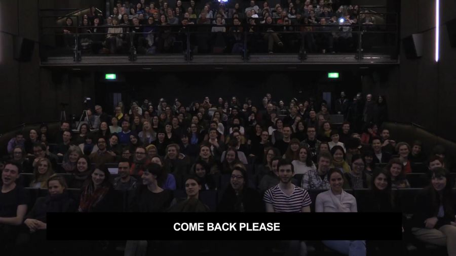 Inoltre, utilizza la propria voce e il contatto diretto con lo spettatore, coinvolto direttamente e invitato ad agire concretamente, andando, così, a infrangere le normali regole della distanza tra finzione cinematografica e pubblico.