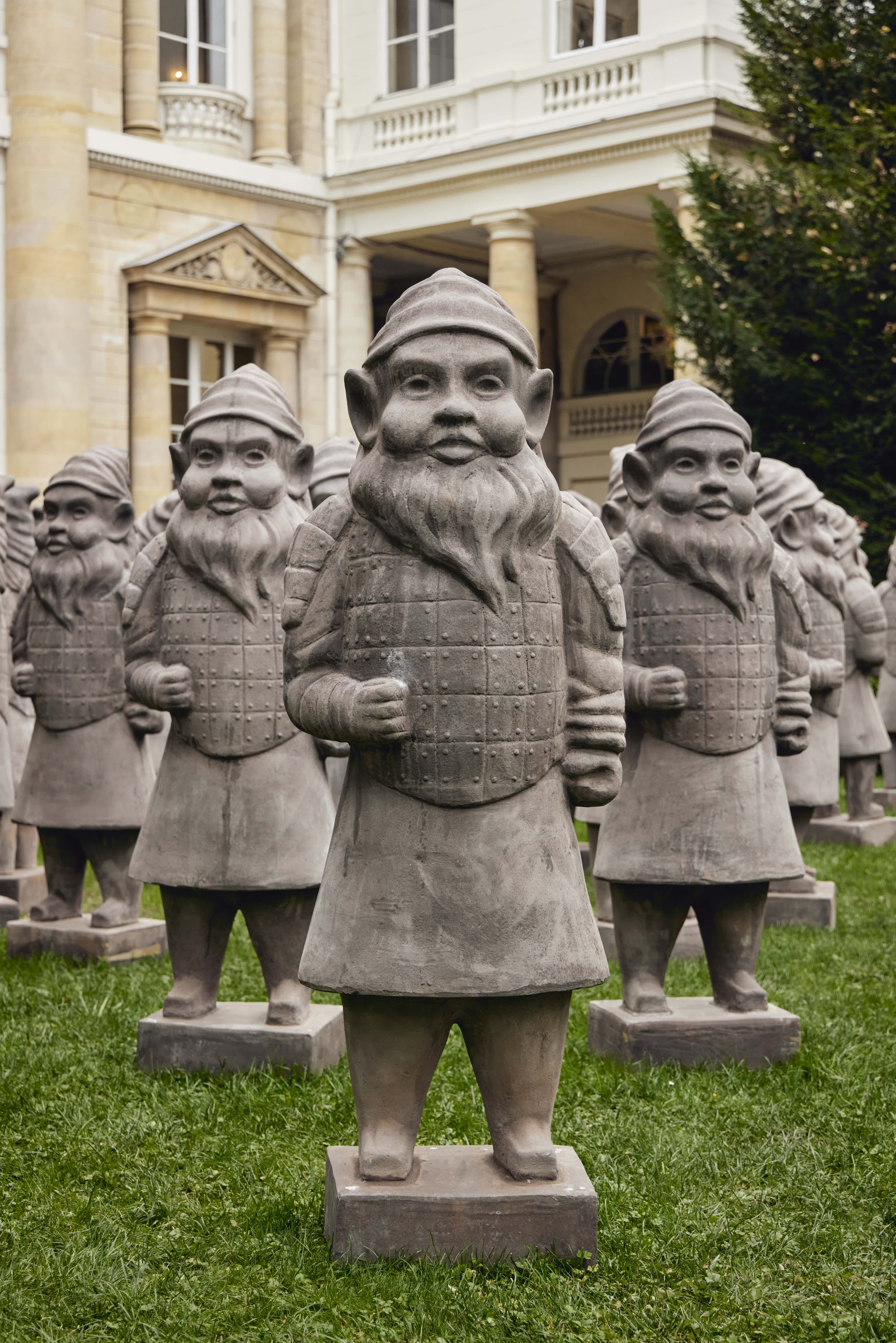L’arte di Papeschi propone una riflessione ironica e provocatoria su come una civiltà aliena potrebbe interpretare la nostra storia, dopo l’estinzione umana. Il progetto si snoda in diversi capitoli, ricostruendo frammenti della nostra cultura attraverso un punto di vista distorto, nel tentativo di dare un senso ai reperti umani. Zwergen Dämmerung: La Guerra come Retaggio dell’Umanità Il primo capitolo, “Zwergen Dämmerung” (Il Crepuscolo dei Nani), ci presenta un esercito di terracotta composto da 54 figure con corpi di guerrieri di Xi’an e teste di nani da giardino.