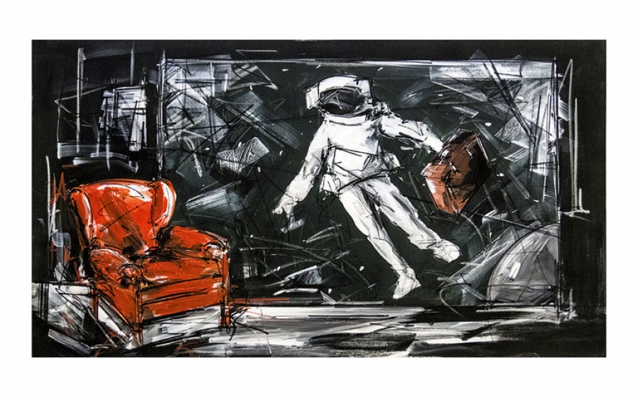 Marco Tamburro, in tutti i suoi lavori, riflette profondamente sulla vita quotidiana, sulla coazione a ripetere, fino alla spersonalizzazione dell’essere umano che esiste ma non vive, inghiottito in una vorticosa esistenza cittadina frenetica, gelida, distaccata, che incessantemente olia un meccanismo alienante e alienato.