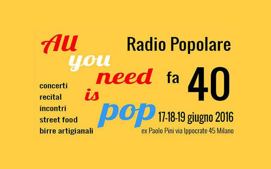 Parte oggi, fino a domenica sera, All you need is Pop:  un festival di tre giorni a Milano per festeggiare i primi 40 anni di Radio Popolare.