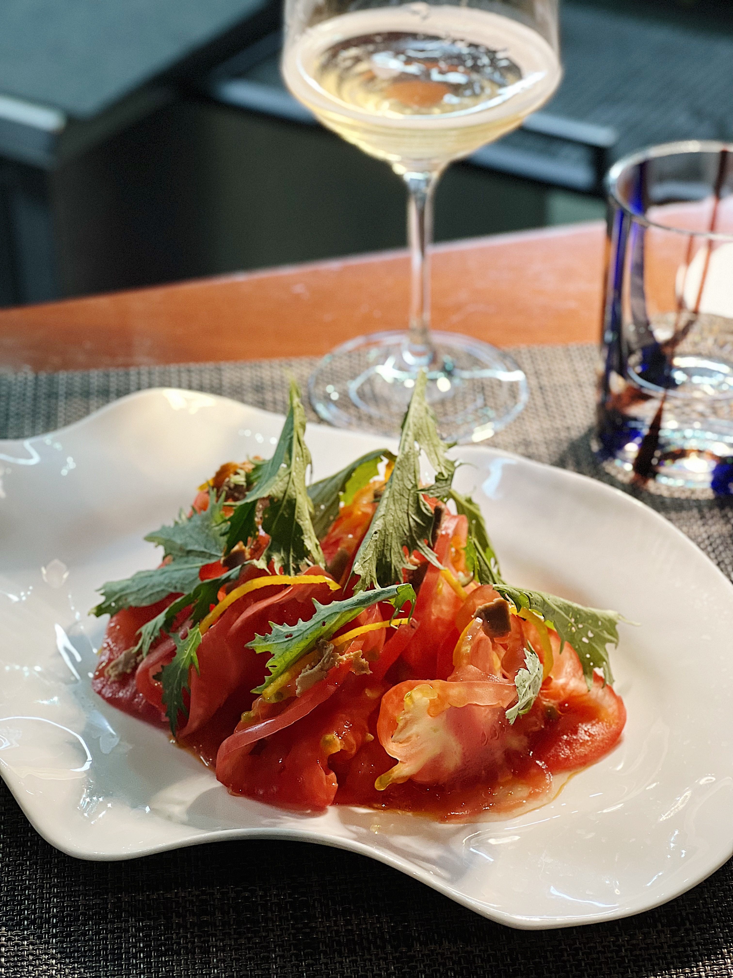 Dallo studio dei principali accordi della profumazione, lo chef Canzian ha preso ispirazione per realizzare il Carpaccio di pomodoro con bottarga di tonno, basilico e mandarino in salamoia, servito su un cuore di pesche e nettare rosso dell’emporio di DanielCanzian Ristorante. Un tuffo tra sapori e aromi che accompagna verso una nuova dimensione, dove gusto e olfatto si uniscono in una sinestesia di emozioni.