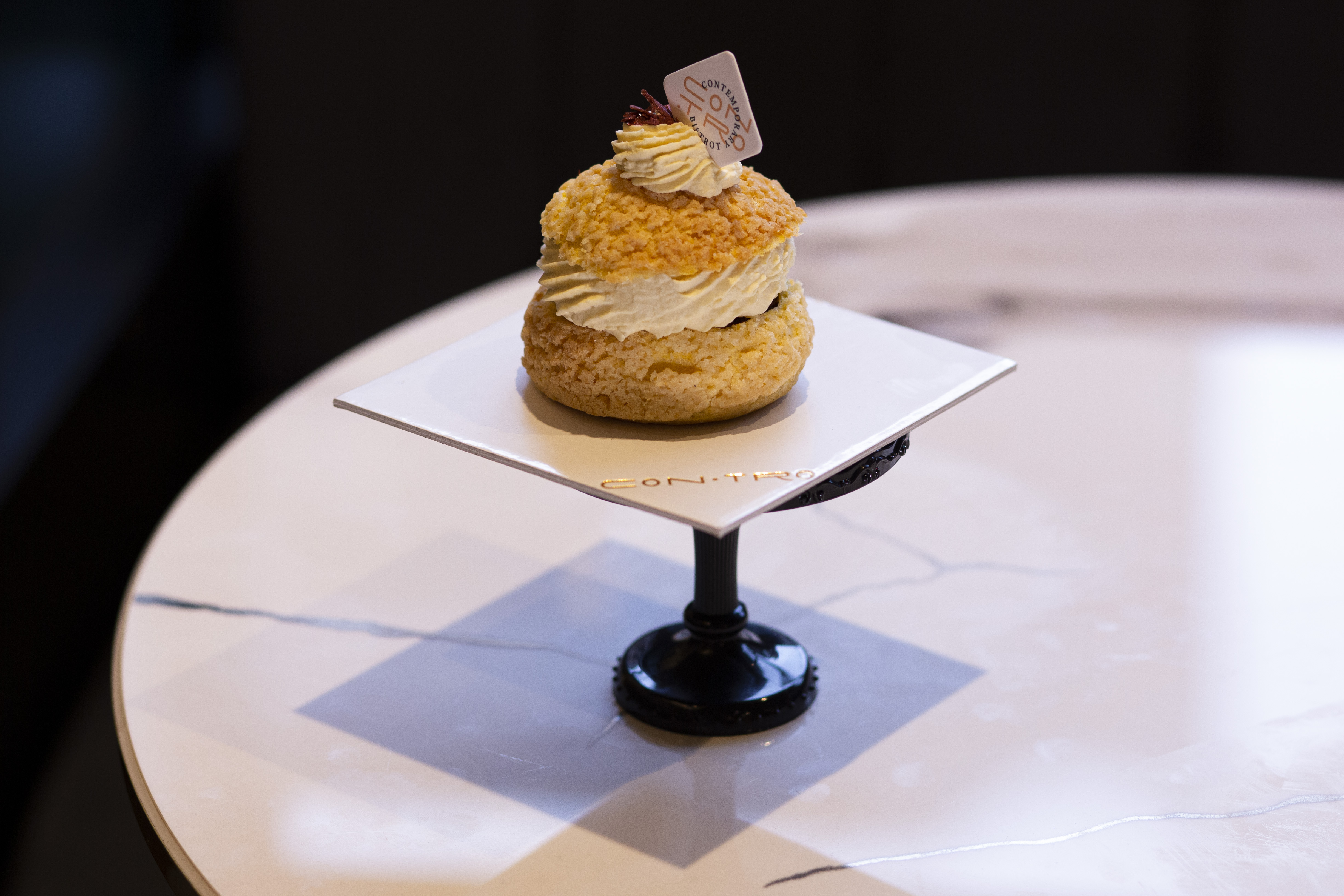 Con l’ingresso di Andrea Fiori lo sguardo è rivolto al futuro, una visione che sposa la filosofia di Con.tro, pasticceria moderna e al tempo stesso resiliente, senza dimenticare i grandi dolci della tradizione, veri capolavori dell’arte di pasticceria italiana e d’ispirazione francese. Infatti, in vetrina sarà sempre disponibile una linea classica con torte personalizzabili al gusto di profitterol, millefoglie, dessert alla frutta e la mitica religiosa; quest’ultimo è un dolce di derivazione francese, la religieuse, consumato durante ricorrenze religiose, appunto, o all’uscita dalla messa la domenica: qui, viene reinterpretato con una chantilly allo zabaione profumata al Marsala, una crema al cioccolato 70% e una bignè croccante con frolla.