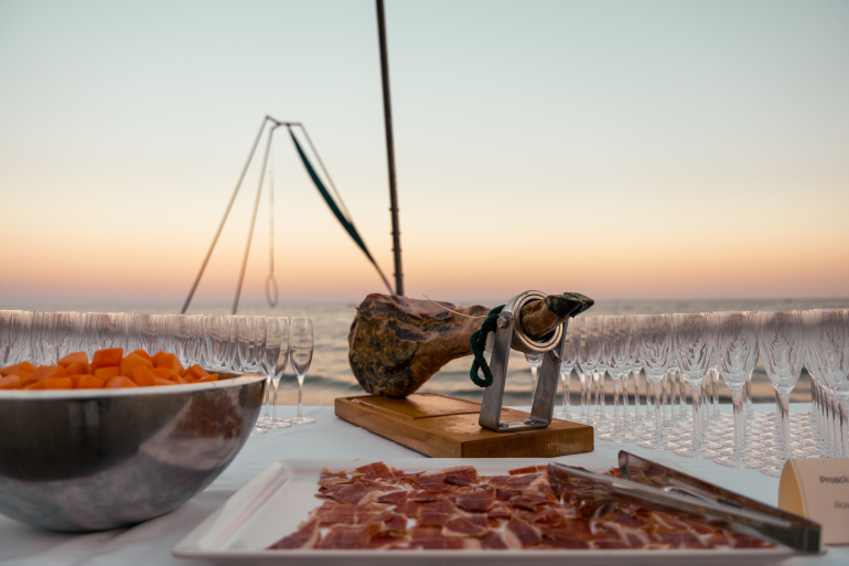 La serata prosegue in spiaggia con un Grand Buffet di specialità del mare, allestito all'interno di una tipica barca di pescatori liguri impreziosita da piantine di basilico fresco di La Fattoria di Pol e presidiata dal rinomato Executive chef Roberto Balgisi con la sua brigata.