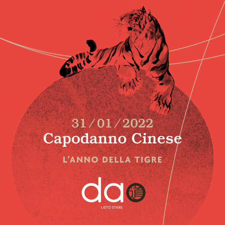 Una delle feste tradizionali più celebri e sentite dalla popolazione cinese è senza dubbio il Capodanno lunare (除夕 CHÚXĪ ) che  cade ogni anno tra gennaio e febbraio. Per onorare questa importante festività, il ristorante cinese Dao organizza il 31 gennaio, la vigilia del capodanno lunare, un menu degustazione con piatti portafortuna. Il 2022 è il segno della tigre, il terzo segno dello zodiaco che in cinese si pronuncia 老虎 Lǎohǔ. Il 1 febbraio 2022 inizia l'anno della Tigre, nello specifico della Tigre d'Acqua che si ripete ogni 60 anni. La tigre in Cina è considerata il re degli animali e rappresenta coraggio, sicurezza, ostinazione e determinazione.