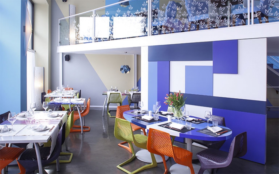 La stessa esplosione cromatica che ci si trova davanti nel piatto, la si può ammirare in tutto il locale, nel suo design e nella scelta dell’arredamento. Il progetto Blue Ginger è stato firmato dai due architetti Alessandro e Francesco Mendini che hanno studiato ad hoc un look post moderno, fra illuminazione discreta, mix di colori, tavole del grafista Bros alle pareti e musica soft di sottofondo.