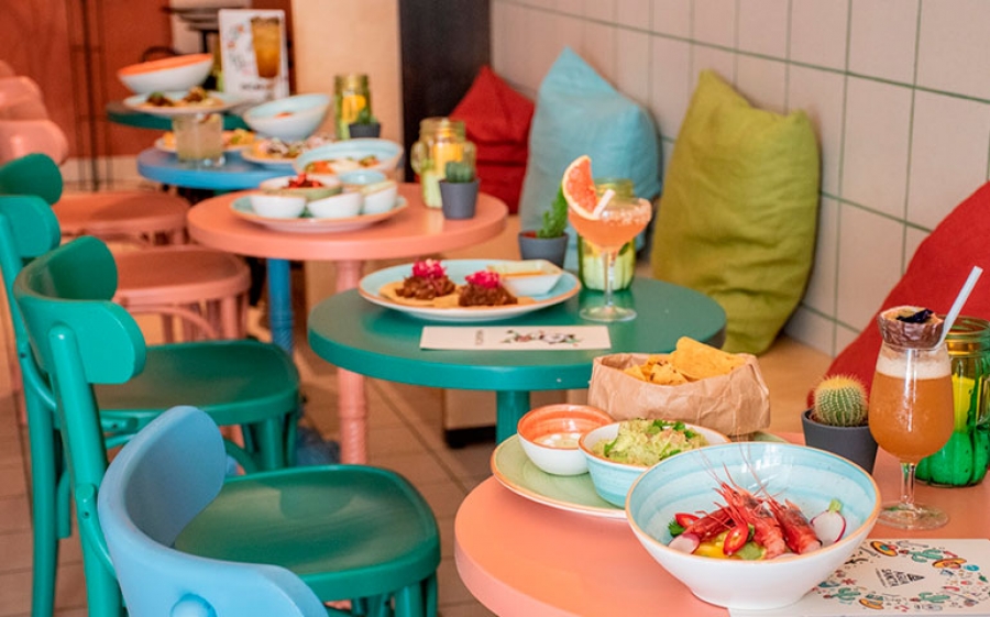 Non solo Cocktail bar, ma anche “Mexiterranean Bistro”: accanto alla drink list spuntano, infatti, proposte food pensate per rendere l’aperitivo, ma anche il pranzo, davvero mex oriented: tacos di pollo, guacamole, nachos, insalate e l’immancabile aguachile, proposto nella sua versione con i gamberi rossi di Mazara.