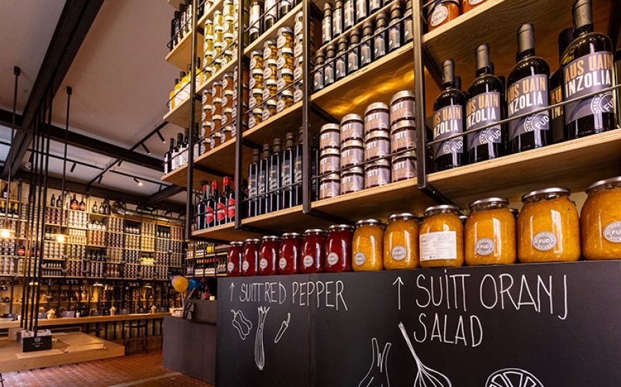FUD è un laboratorio pensato per promuovere, diffondere e accogliere la degustazione informale e sensoriale di prodotti di alta qualità e che vuole coinvolgere i suoi visitatori nell’intera esperienza del cibo, dalla preparazione al consumo. Ed ecco allora alte scaffalature appese al soffitto che mettono in bella mostra tutte le prelibatezze (conserve, confetture, legumi, frutta secca, cioccolato, olio, vino) del mondo FUD, il banco salumi, il banco bar a diretto contatto con la cucina, lavagne e “social teibols”.