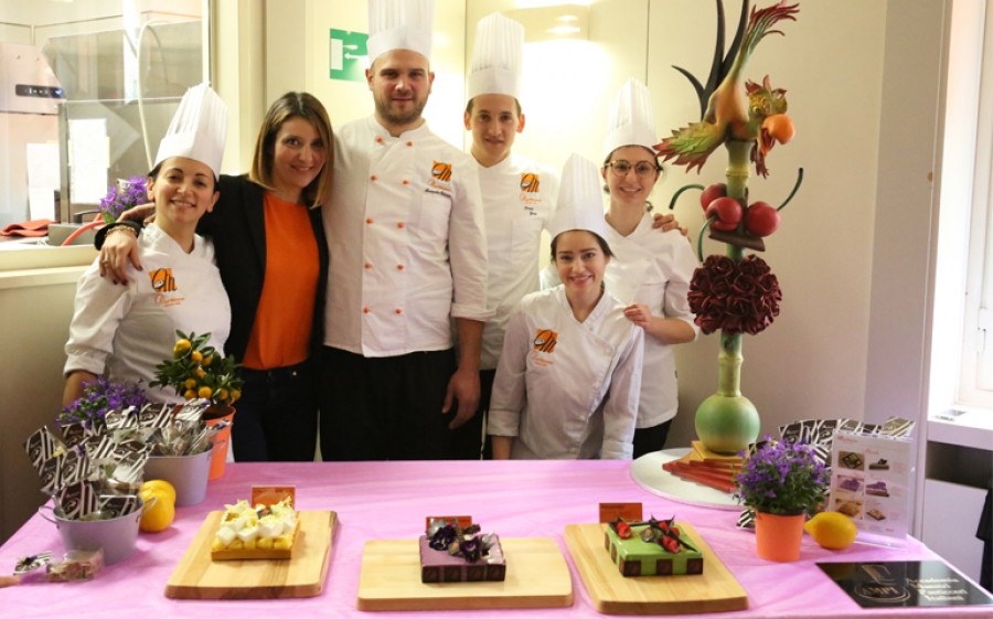 La torta Profumo di Primavera, ad esempio, ha l’aspetto di una meravigliosa mattonella ricoperta di fiori, che racchiude un ripieno al ribes rosso e nero e una profumata crema alla violetta. O ancora la Sensazione al Limone, i cui colori sgargianti colpiscono l’occhio tanto quanto i sapori del ripieno, con confettura di pere, limone e spuma di lime. Anche la golosa Alexander colpisce per il verde acceso della sua crema al pistacchio, accompagnata da un pralinato al cacao e freschi lamponi.