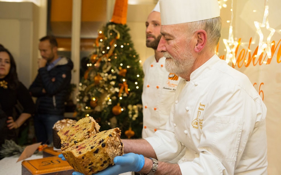 Oltre ai panettoni, poi, c’è l’Albero Gastronomico, ovvero il tradizionale panettone gastronomico, che in questo caso è stato rivisitato dal pastry chef Alessandro Comaschi, che gli ha donato un “taglio nuovo” richiamando la sagoma del tipico abete natalizio. Il pane utilizzato non è cotto in compressione e garantisce una morbidezza unica, ideale per catturare i sapori della ricca farcitura mista di salmone, gamberetti, lombo, prosciutto cotto, salame, prosciutto crudo e patè d’oca.