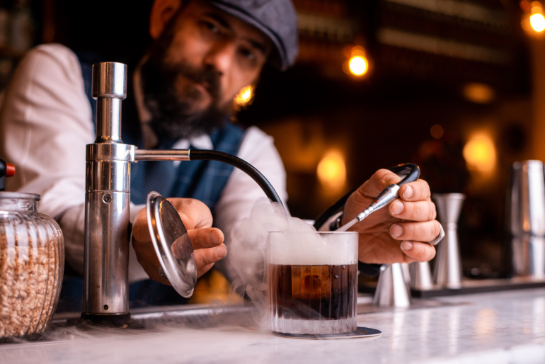 Ma la vera innovazione è nei Amari Fizz, come il "Nepeta Fizz" e il "Dente Fizz", che combinano sapientemente amari con sciroppo semplice e succo di lime, creando bevande fresche e avvolgenti. E non mancano le creazioni più audaci, come il "Cavaliere di Franciacorta", un mix di Champagne Franciacorta, Tequila Patron e Amaro del Capo Red, impreziosito da un tocco di sciroppo di mandarino e un soffio di rosa damascena.