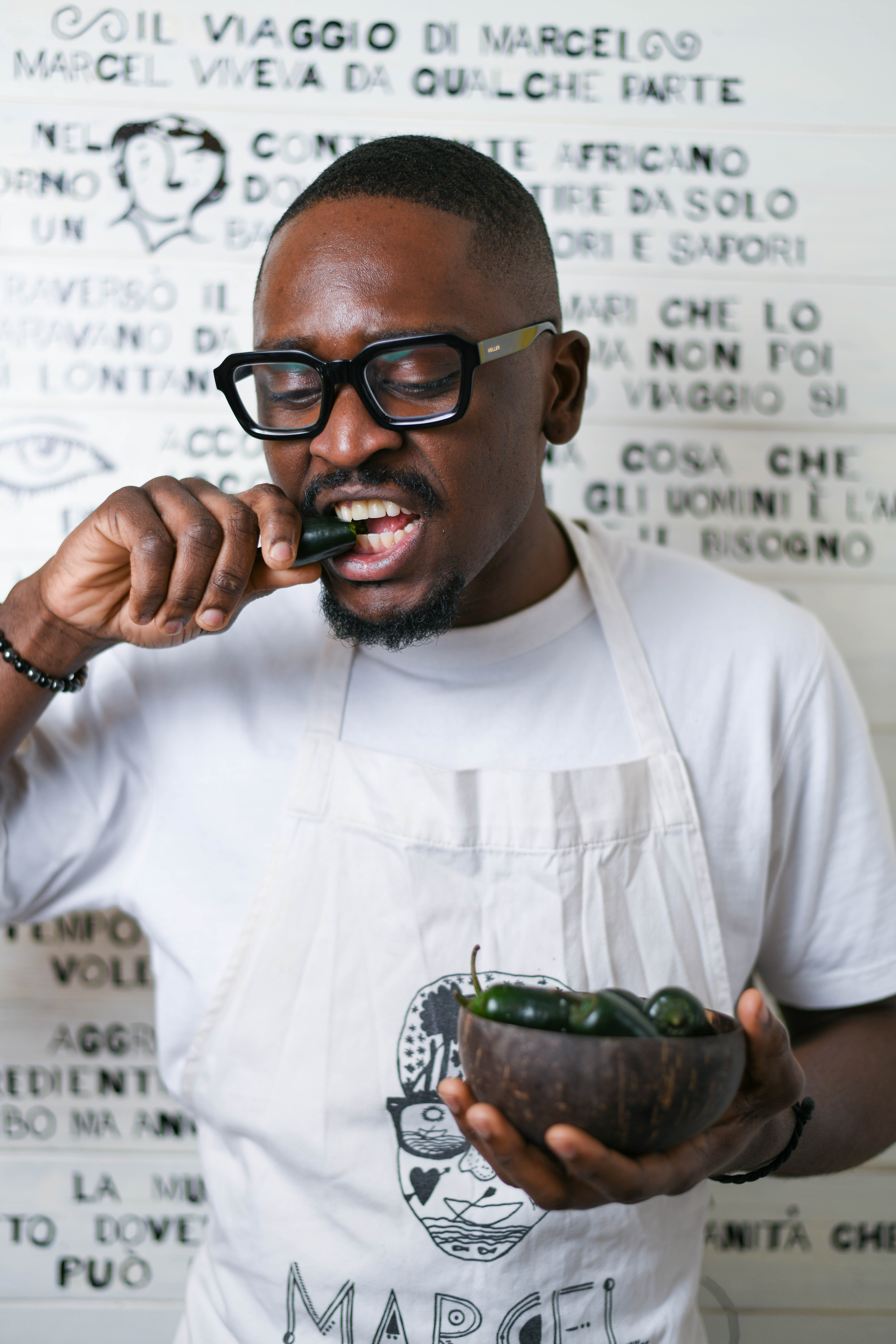 In cucina trovano Prince, Chef bresciano di 29 anni originario del Ghana a rappresentare gli africani di seconda generazione, esponenti di una nuova cultura e di nuove tradizioni. Al suo fianco il Sous Chef Riyan Khani, richiedente asilo proveniente dal centro di accoglienza che fin dall’apertura lavora con e per Marcel.