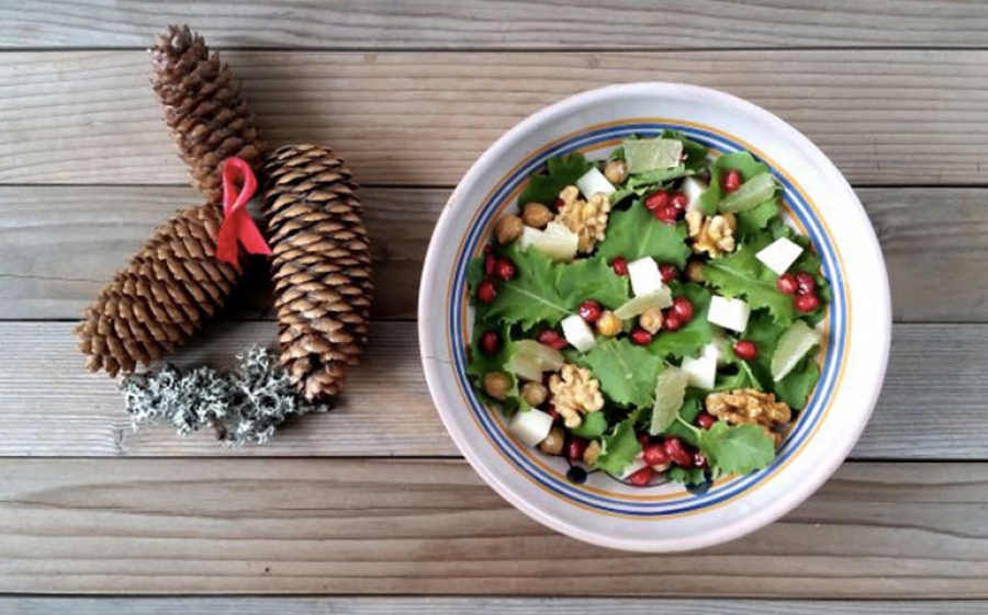 Insalata natalizia con kale, melagrana, ceci e limone