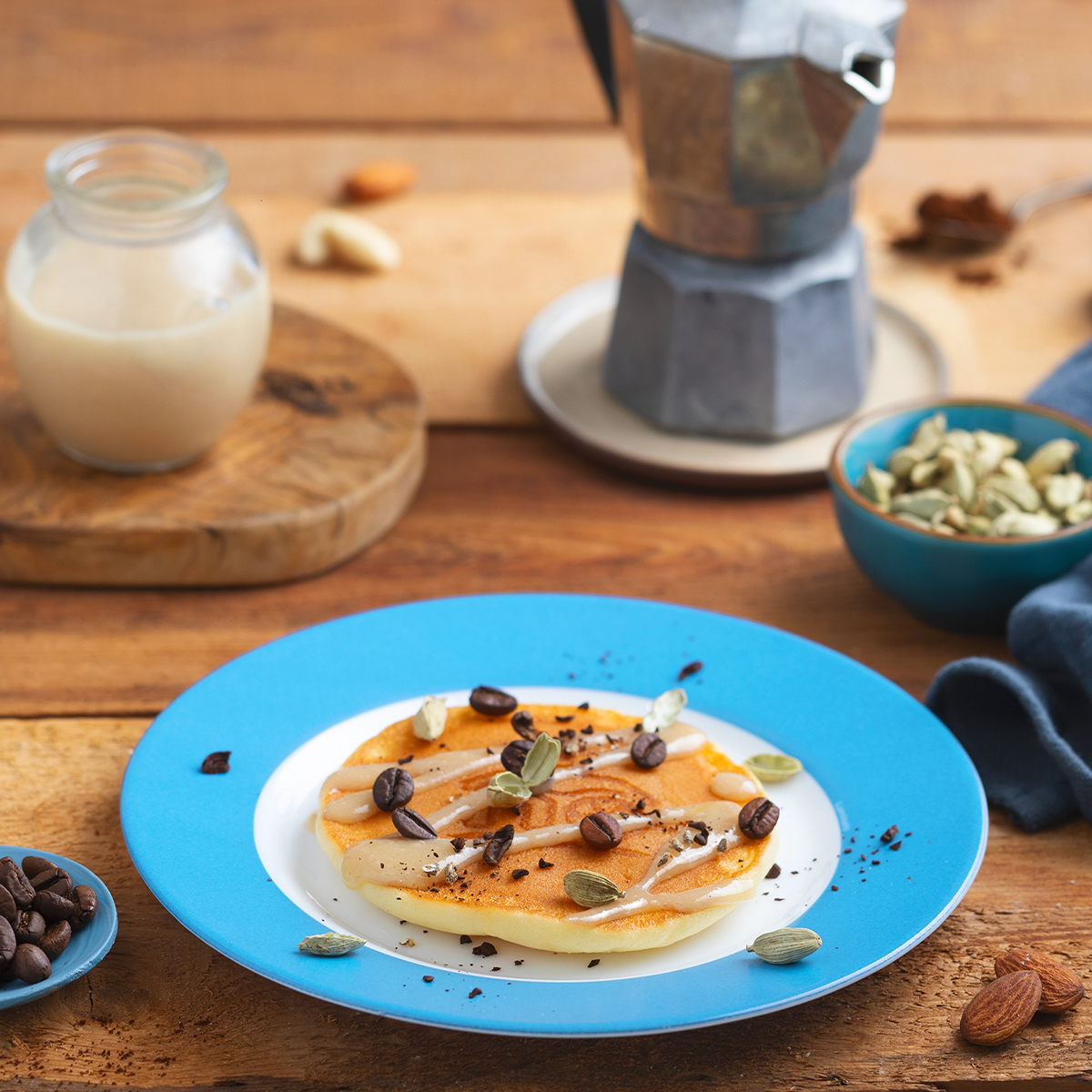 PANCAKE CON CARDAMOMO, CREMA DI MANDORLE E CHICCHI DI CAFFÈ