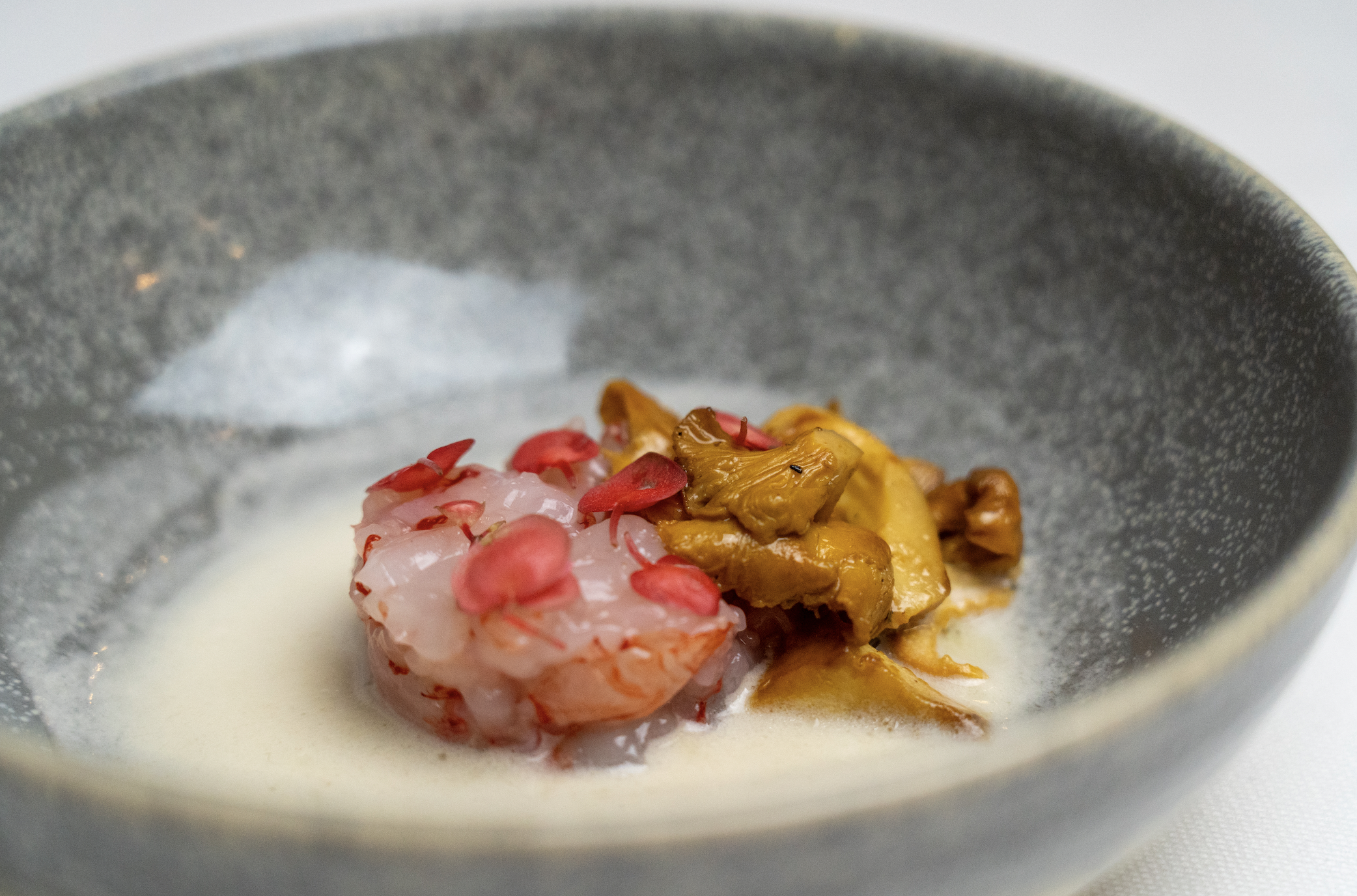 Il percorso inizia con "Calamaro, carote, chimichurri e sommacco", un piatto che fonde sapori inaspettati in un connubio di cultura e creatività. Seguono esperienze sensoriali come "Lumache, fagioli e chorizo", "Gambero blu, Tom Yam e cardoncelli" e "Curry di ceci, banane, cocco e granchio", ciascuna raccontando una storia unica e coinvolgente.