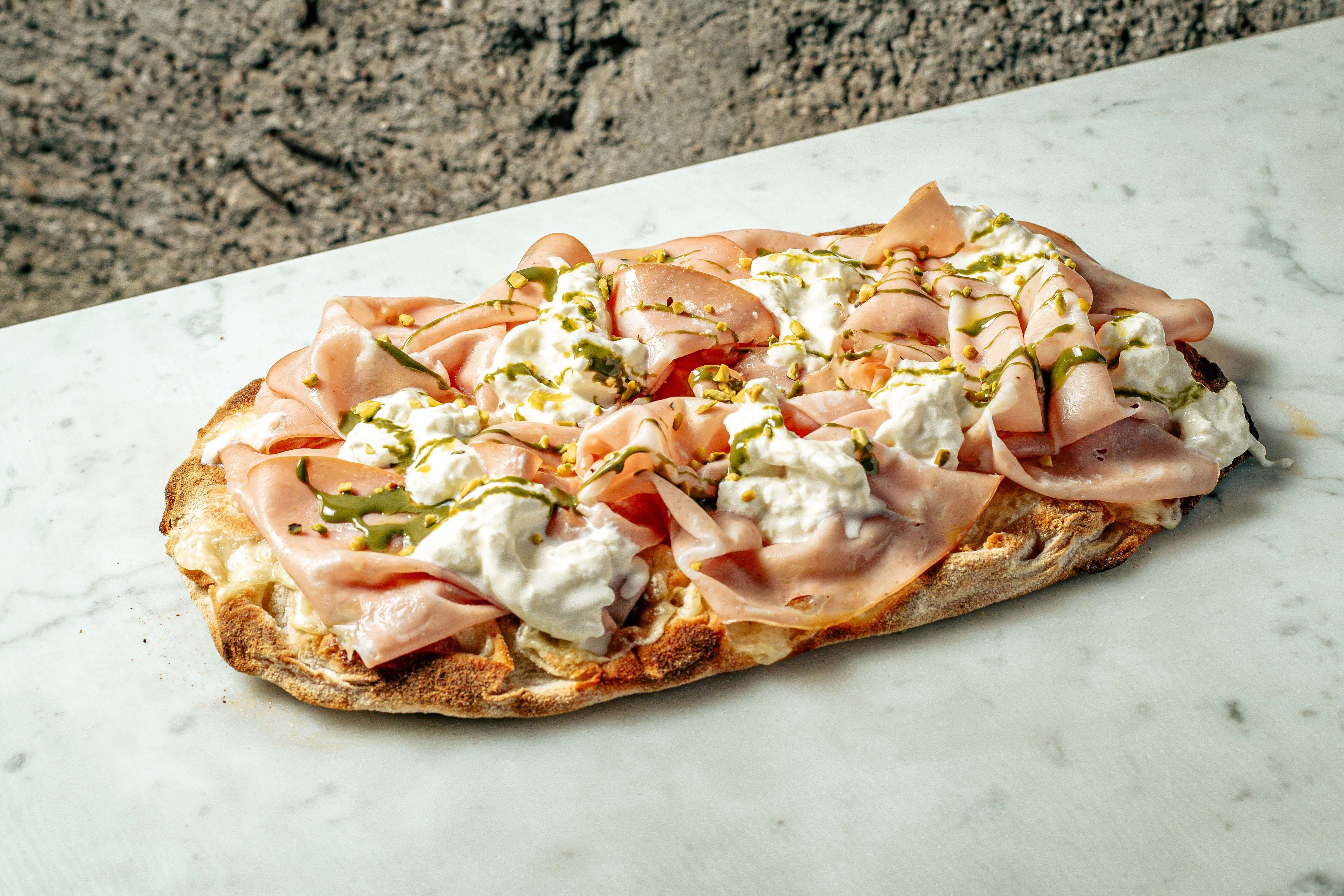 Il locale offre anche deliziose Pinse, da quelle sale e rosmarino a quelle accompagnate da una raffinata selezione di salumi e formaggi; per uno spuntino veloce originale il crostino con la besciamella e la mortazza, con mozzarella, mortadella e crema di pistacchio.