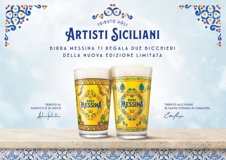 I due nuovi bicchieri di quest’anno sono dedicati al Barocco di Noto e alle Pigne di Santo Stefano di Camastra – antica città di tradizione ceramica in provincia di Messina - e raccontano da un lato la storia degli artisti che ne hanno ideato i fregi, svelando le contaminazioni del loro percorso creativo, dall’altro la volontà di Birra Messina di continuare a valorizzare e celebrare la ricchezza artistica del territorio da cui trae origine la sua storia. Attraverso la combinazione di forme e colori che richiamano le arti della pittura e della ceramica, i bicchieri sono accompagnati da una preziosa scatola pensata per trasmettere tutta la ricchezza, la passione e la generosità della Sicilia.