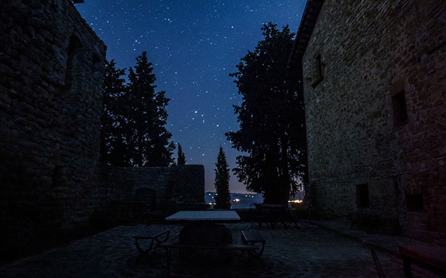 L'osservazione del cielo coinvolgerà gli esperti di Astronomitaly, un team di persone appassionate di Astronomia che, munite di telescopi, racconteranno agli ospiti le meraviglie del firmamento: dalla luna piena agli anelli di Saturno, dalla Via Lattea alle galassie, dalle costellazioni alle stelle doppie. Un momento magico, quindi, che vedrà protagonista uno dei cieli più belli d’Italia, dato che al Castello di Petroia l’inquinamento luminoso è assente e si registrano massimi livelli di buio. Dopo aver ammirato la volta celeste, si potrà dormire nel giardinetto situato sotto la Torre millenaria, munendosi ovviamente di un sacco a pelo, e al risveglio, la giornata comincerà con una deliziosa colazione che verrà servita nella Sala Guidobaldo.