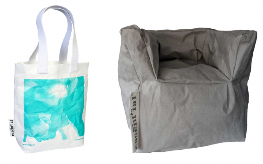 Il Sacco Borsa che Essent’ial ha ideato per la fiera di quest’anno ha una grafica stampata ideata proprio da Miart, ed è realizzato in Tyvek e cotone naturale. Il design del Sacco Borsa è lineare, minimal, ed estremamente funzionale, perfetto esempio degli obiettivi del marchio.