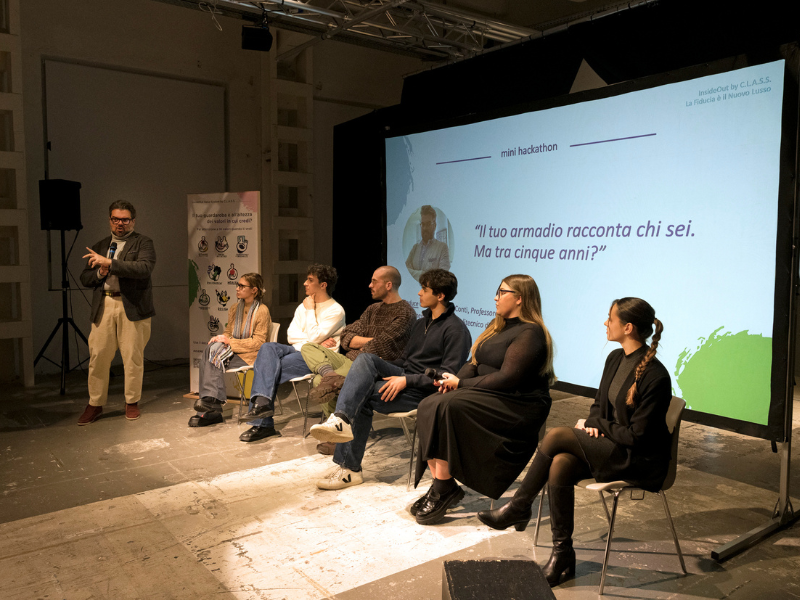 Parte 3: la sessione finale – Il guardaroba del futuro. Il suo protagonista Isabella Goldman, bio-architetta. Lei ha aperto il discorso del guardaroba come habitat, di lusso e Design for Disassembly, che è un insieme di principi di progettazione per ideare prodotti che possano facilmente essere riparati e messi a posto, aggiornati con i trend o disassemblati per riciclare i materiali. Il secondo protagonista era Giovanni Maria Conti, Professore del Policlinico di Milano e Ambassador InsideOut. Lui ha moderato un dibattito tra alcuni studenti presenti venendo dalle scuole di moda principali. Un vero mini-hackathon sul tema “Il tuo armadio racconta chi sei. Ma tra 5 anni?”. Da questo confronto sono emersi tre consigli green per un guardaroba di valore che sono stati condivisi da Margot Sikaboni:
