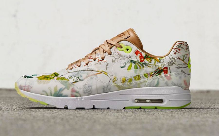 La stampa floreale della nuovissima collezione Nike, dipinta esclusivamante a mano, è ispirata ai disegni botanici dell’archivio Liberty e viene applicata alle forme inconfondibile del marchio di scarpe.