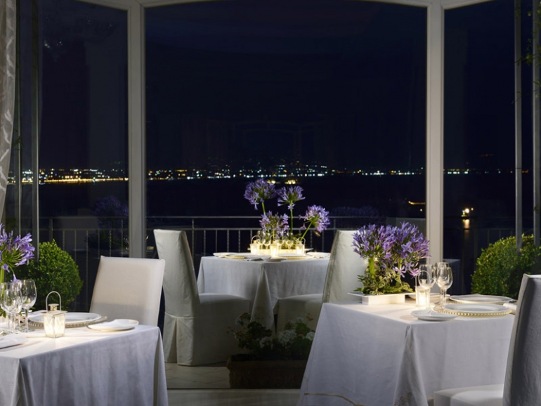 Lo chef Francesco Russo preparerà un cenone di eccellente qualità, preceduto da un aperitivo di benvenuto al bar "i Faraglioni". Il menù sarà composto da finissima di seppie grigliate ai carboni e noci, con salmone marinato al sale grosso e arancia, su rughetta spontanea e olio alle erbette, risotto Carnaroli mantecato alla barbabietola con fonduta di caciocavallo e scampo marinato alla soia, mezzo pacchero dei maestri pastai gragnanesi al sughetto di coccio e pescatrice, colatura di pomodorini all’aneto e vongole, scaloppa di ombrina bocca d’oro scottata al sale affumicato con gamberone in kataifi, baccalà in tempura e millefoglie di patate agli agrumi. Per finire, semifreddo ai due cioccolati con cuore di cremoso ai lamponi e salsa al mandarino.