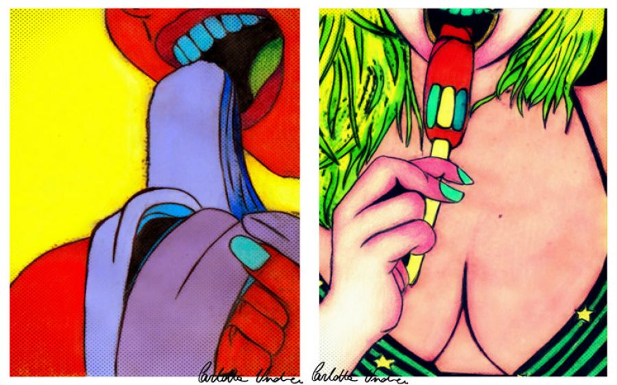 Esagerate, sfrontate, sfacciatamente pop: sono le donne che Carlotta Vindice, aka Carlotta, analizza, ispeziona, frammenta e ricostruisce su cartone, tela, supporti di fortuna e di recupero.